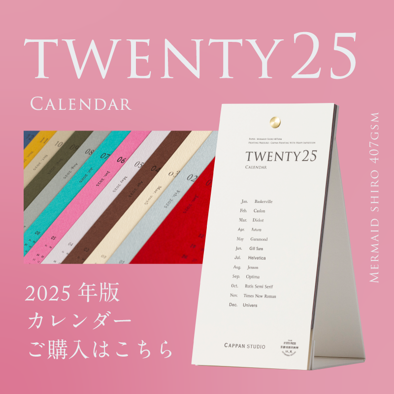 2025年を迎えたとき。このこだわりを綴じたカレンダーを、活版印刷・用紙見本帳として本棚にそっと納めて頂ければ本当に嬉しく思います。